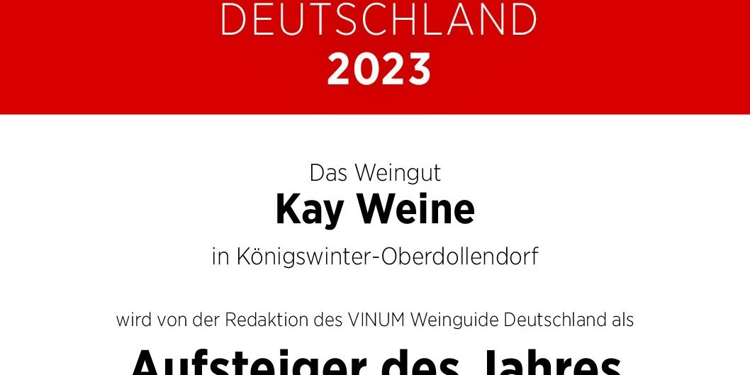 Die Weinführer haben uns dieses Jahr alle zwei Sterne gegeben und was uns ganz besonders freut: Vinum hat uns zum Aufsteiger des Jahres im Weinbaugebiet Mittelrhein gewählt. Bei Ecovin, dem größten Deutschen Bio Weinbauverband, haben wir mit unserem Elbling Sekt die Goldmedaille, den Eco Winner gewonnen.